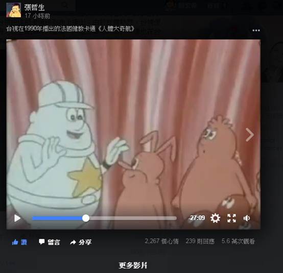 但剛剛很神奇的我竟然在FB 張哲生 先生的臉書看到他分享人體大奇航的卡通,立馬就決定寫下一篇日記告訴大家我找到人體大奇航的影片了,雖然只有一集啦。