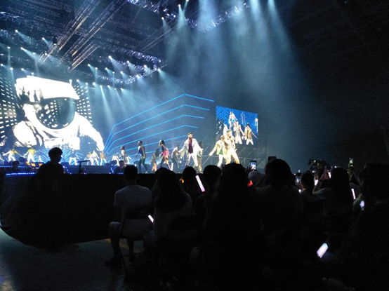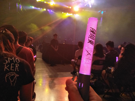 我的位置算是VIP區,好在當初買票有先見之明,買位置買在最靠近舞臺的走道邊一排,這樣就不怕要上廁所不方便,然後現場每個座位都有一根螢光棒,在演唱會開始前不會亮,但很神奇的是在演唱會開始後螢光棒自己變色了!天阿!這真是太神奇了!