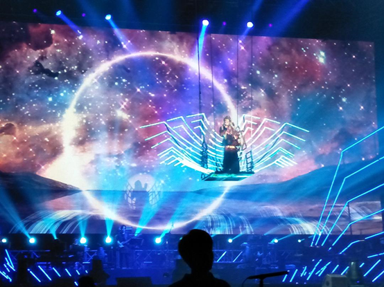 終於,演唱會開始了!陳曉東出現了!他就像神一樣,全身白晰透亮,閃閃發光的高掛天上,唱著輕快的歌曲,應該是新歌我沒聽過的,現場聲音真是教我震憾,原來這就是演唱會,音樂是會震動的,儘管現場聽的聲音可能跟媒體上聽到的不一樣,但我真實感受到演唱會現場與播放音樂的真正不同。