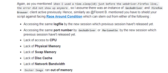 就是Race Around Condition,亦即每個test case開啟geckodriver instance時彼此在搶資源,搶不到就讓你癡癡的等的意思,然後稍微說明一下可能原因,這情況並非只有headless browsers有,但我覺得在headless中發生的次數與狀況卻較為嚴重。