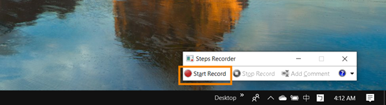- 按下App控制列的Start Record按鈕(跟錄音機一樣圓圓的紅色那一顆),此時你在windows上作的每一步操作就會開始被紀錄並截圖。