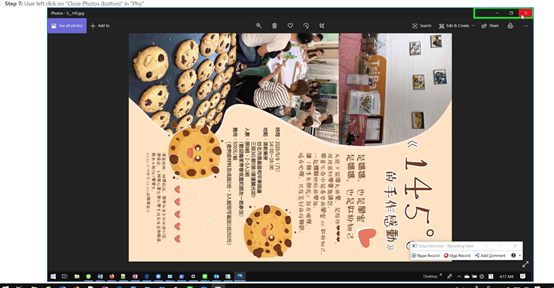 - 開始你的windows操作:這邊我們示範錄製怎麼打開桌面圖片並旋轉90度然後另外儲存檔案,最後關閉圖片。