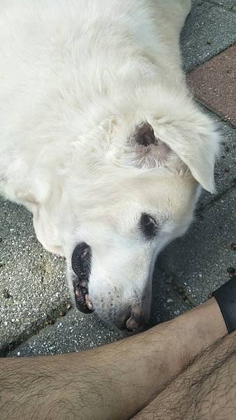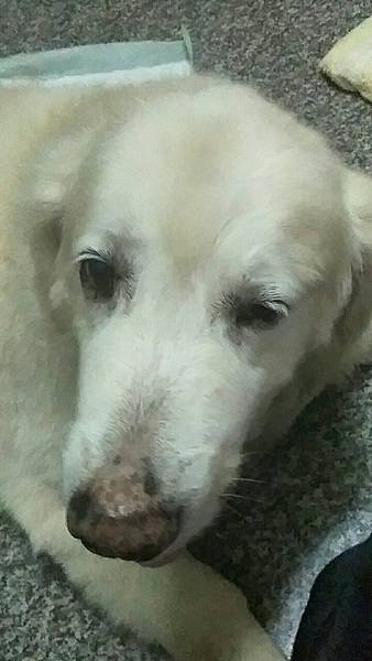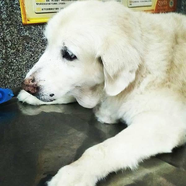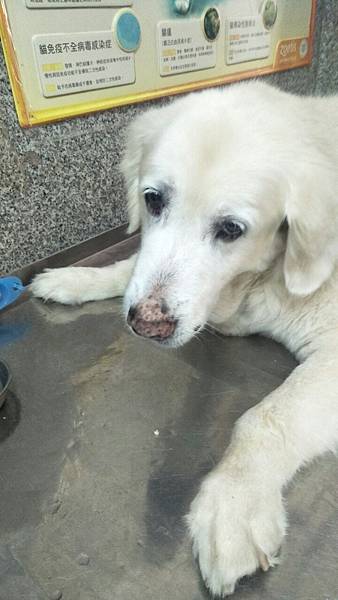 [這幾天生病的貝兒很沒精神了,但看到我回來還是一直搖尾巴]