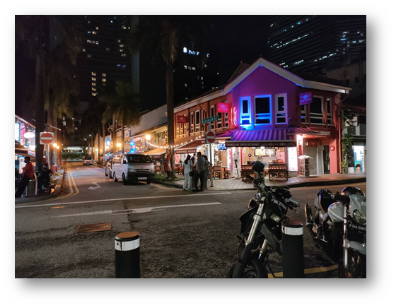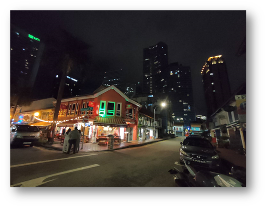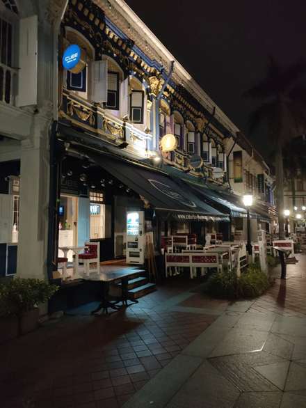 我座落的地方是在很有名的阿拉伯街旁邊,旅館旁邊就是一間很大的回教寺廟,而旅館所在的Bussorah Street 即使已是午夜時分,依然有不少餐館還開著,很多人在這邊聚集吃飯喝酒或聊天,我隨意找了家路邊的餐館,隨便點了份蛋炒飯和一杯荔枝飲料(別懷疑,他們真的就叫荔枝,這邊都是阿拉伯土耳其餐廳),沒想到賊好吃的這蛋炒飯和飲料,而且荔枝是一整顆泡在飲料中,是可以直接吸管戳起來吃掉的,這種飲料喝法我還真第一次遇到,然後他們的炒飯就是一個字,讚!沒啥好說的!哈!